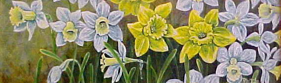 Daffodils fascinate me----they appear to have simple structure until you start to look closely, and then you see all their complexity! I painted these outdoors on a lovely, warm day in April, and I think if you stand in front of this piece you'll feel the warm, humid breeze and smell the rich perfumes of spring!